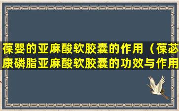 葆苾康磷脂亚麻酸软胶囊是一种保健品,其主要成分包括磷脂和亚麻酸。以下是这两种成分的一些潜在功效与作用: