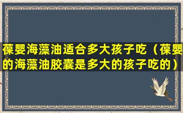 葆婴海藻油是一种富含DHA(二十二碳六烯酸)的补充品,DHA是一种Omega-3脂肪酸,对婴幼儿的大脑和视力发育非常重要。通常,海藻油适合从婴儿期开始补充,但具体的使用年龄和剂量应该根据产品的说明和医生的建议来确定。