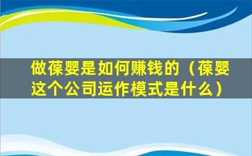 葆婴(BabyCare)是一家专注于婴幼儿护理产品的公司,其产品包括婴儿纸尿裤、湿巾、洗护用品等。如果你是在询问如何通过销售葆婴产品来赚钱,那么通常有以下几种方式: