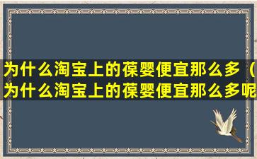 在中国,电子商务平台如淘宝、京东等为消费者提供了便捷的购物渠道。关于您提到的“淘宝上的葆婴便宜那么多”的情况,可能有以下几个原因: