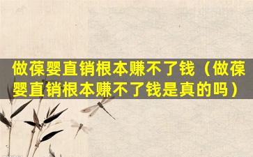 关于“做葆婴直销根本赚不了钱”的说法,这可能源于个人经验、市场情况或者对直销模式的误解。直销是一种销售模式,它允许个人通过销售产品或服务来赚取佣金,并且通常还包括招募新成员加入销售网络的奖励。直销是否能赚钱取决于多种因素: