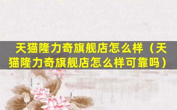 关于“天猫隆力奇旗舰店怎么样”这个问题,我无法提供实时的用户评价或者店铺反馈,因为我的知识截止日期是2023年4月,而且我无法访问互联网来获取最新的信息。不过,我可以提供一些一般性的建议来帮助你评估天猫上的店铺。