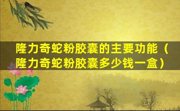 隆力奇蛇粉胶囊是一种保健品,其主要成分通常包括蛇粉和其他可能的草药成分。在中国,保健品不能宣称具有治疗疾病的功能,只能作为辅助保健使用。隆力奇蛇粉胶囊可能宣称的功能包括增强免疫力、改善睡眠质量、缓解疲劳等,但这些功能需要消费者根据个人体验来判断,并且应在医生或专业人士的指导下使用。