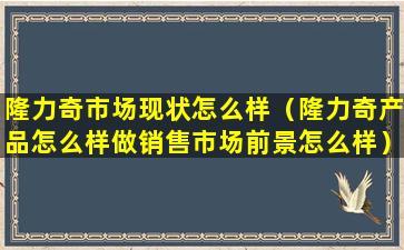 隆力奇产品在销售市场上具有一定的前景,但具体的市场表现还需要结合实际的市场环境、消费者需求、竞争状况以及公司的营销策略等多方面因素综合考量。