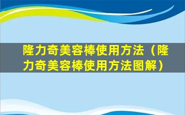 请注意,不同型号的隆力奇美容棒可能有不同的使用方法和功能,因此在使用前务必仔细阅读产品说明书,并按照说明进行操作。如果有任何疑问或不适,建议咨询专业人士或联系生产厂家。