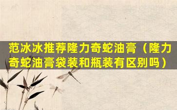 范冰冰是中国著名的女演员,她曾经在多个场合推荐过各种产品,包括护肤品。隆力奇蛇油膏是隆力奇公司生产的一款护肤品,它含有蛇油成分,据称具有保湿、滋润皮肤的功效。
