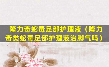 关于“隆力奇蛇毒足部护理液”,目前没有足够的信息来验证其真实性或效果。在购买任何健康或美容产品之前,建议您仔细研究产品的成分、生产商的信誉以及是否有科学研究支持其宣称的效果。