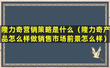 隆力奇产品销售市场前景分析: