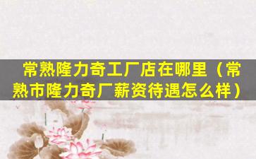 常熟隆力奇工厂店位于中国江苏省常熟市。隆力奇是一家知名的日化产品生产企业,其工厂店通常会销售公司的各类产品,包括但不限于个人护理、家居清洁等产品。