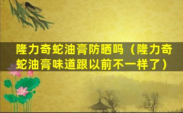 隆力奇蛇油膏是中国市场上比较知名的护肤品牌,其产品以蛇油为主要成分,具有滋润保湿的功效。关于隆力奇蛇油膏是否具有防晒功能,需要查看具体产品的说明。