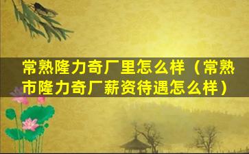 关于“常熟隆力奇厂里怎么样”,这个问题可以从几个方面来回答: