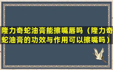 虽然隆力奇蛇油膏可以用于皮肤,但是并不推荐直接用于嘴唇。嘴唇的皮肤比身体其他部位的皮肤更为敏感和脆弱,而且嘴唇经常接触食物和唾液,如果使用不当,可能会导致误食或不适。