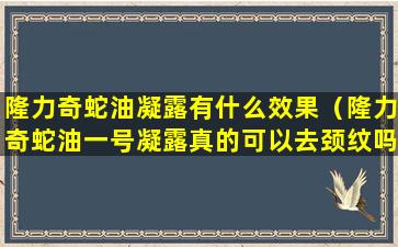 隆力奇蛇油一号凝露是隆力奇公司生产的一款护肤产品,它含有蛇油成分,据称可以帮助改善皮肤干燥、粗糙等问题。关于去颈纹的效果,这通常取决于多种因素,包括颈纹的深浅、个人的皮肤类型、使用产品的频率和方法等。