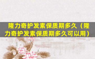 隆力奇(Longrich)是一家中国的多元化企业,涉及个人护理、健康产品等多个领域。关于隆力奇护发素的保质期,通常情况下,化妆品和个人护理产品的保质期在中国大陆地区是3年。这个保质期是从产品生产日期开始计算的。