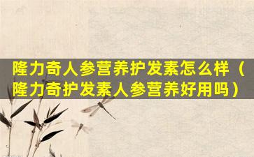 关于“隆力奇护发素人参营养好用吗”的问题,这主要取决于个人的使用体验和头发的具体需求。以下是一些可能影响产品效果的因素: