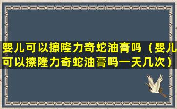 隆力奇蛇油膏是一种常见的外用保湿产品,主要成分是蛇油,具有滋润皮肤、防止皮肤干燥的作用。对于婴儿使用隆力奇蛇油膏,建议在使用前咨询儿科医生或皮肤科医生的意见,因为婴儿的皮肤非常娇嫩,对外界刺激比较敏感。