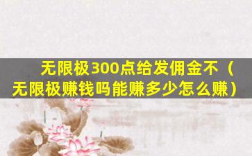 如果“300点”是指业绩点数,那么是否发放佣金以及佣金的多少,需要根据无限极的具体奖励制度来确定。通常,直销公司的奖励制度会在其官方网站或者通过直销员手册等方式公布,以便直销员了解和计算自己的收入。