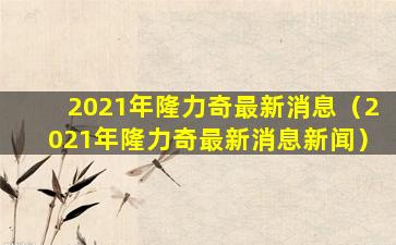截至我知识更新的时间点(2023年),关于“2021年隆力奇最新消息”的具体内容,我无法提供最新的信息。隆力奇是一家中国的直销公司,主要从事健康、美容和个人护理产品的销售。如果您需要了解2021年隆力奇的最新消息,建议您查阅当时的官方公告、新闻报道或相关行业资讯。