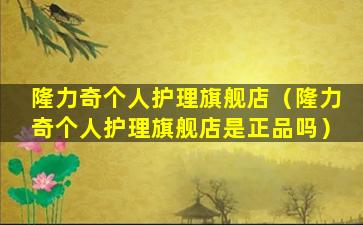 隆力奇个人护理旗舰店可能是指隆力奇公司在其官方网站或者在电商平台(如天猫、京东等)上设立的专门销售个人护理产品的官方店铺。隆力奇是中国知名的个人护理和美容产品品牌,提供包括洗发水、护发素、沐浴露、护肤品等多种产品。