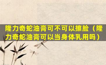 隆力奇蛇油膏可以尝试用于脸部,但建议先做皮肤测试,并根据个人皮肤状况谨慎使用。如果有任何不适,应立即停止使用,并咨询皮肤科医生的意见。