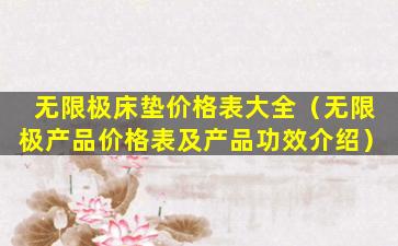 很抱歉,我无法提供具体的“无限极床垫价格表大全”,因为价格可能会因地区、销售渠道、促销活动等因素而有所不同。无限极(Infinitus)是一家以生产健康产品为主的公司,其产品线包括保健食品、个人护理品、家居护理品等,但并不专注于床垫产品。