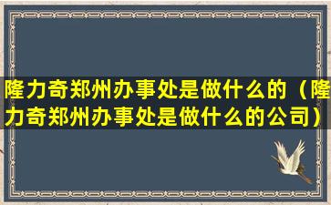 由于我无法获取最新的数据,具体隆力奇郑州办事处的职能和服务内容可能需要直接联系该公司或访问其官方网站以获取最准确的信息。如果您需要了解更详细的信息,建议您直接联系隆力奇公司或其郑州办事处。