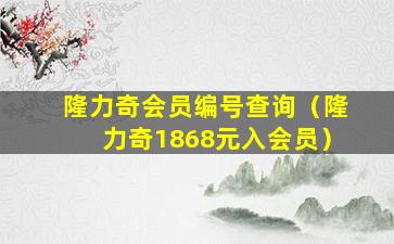 很抱歉,我无法提供关于“隆力奇会员编号查询”的具体信息,因为这可能涉及到个人隐私和公司的内部数据。如果您是隆力奇的会员并需要查询您的会员编号,建议您直接联系隆力奇的官方客服或登录您的会员账户进行查询。