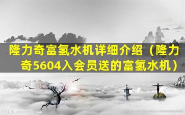 截至我的知识更新日期(2023年),关于“隆力奇富氢水机”的具体信息并不详细,因为这可能是一个特定品牌或型号的产品,而我没有足够的信息来提供一个全面的介绍。不过,我可以提供一些关于富氢水机的一般信息,以及它们的工作原理和潜在的健康益处。