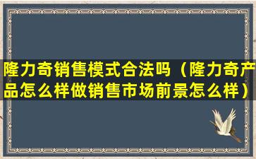 隆力奇是一家中国的直销公司,其销售模式主要是通过直销员直接向消费者销售产品。在中国,直销是合法的,但必须遵守《中华人民共和国反不正当竞争法》、《中华人民共和国消费者权益保护法》以及《直销管理条例》等相关法律法规。