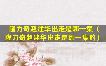 您提到的“隆力奇赵建华出走”可能是指某个电视剧、电影或者网络剧中的情节。但是,由于信息不足,我无法确定具体是哪一集的内容。如果您能提供更多的上下文信息,比如剧名、播出平台或者其他相关角色和情节描述,我可能能够帮助您找到答案。