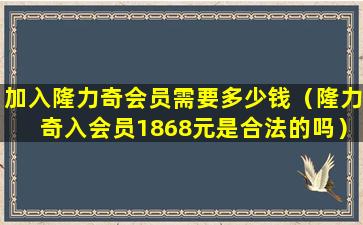 在中国,任何形式的商业活动都应当遵守国家的法律法规。关于“隆力奇入会员1868元”是否合法,需要根据以下几个方面来判断: