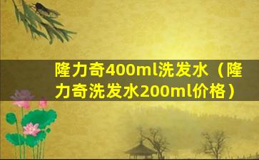 隆力奇(Longrich)是一家中国的多元化企业,涉及健康、美容、家居等多个领域。隆力奇的洗发水产品线丰富,包括多种针对不同发质和需求的洗发水。如果您提到的“隆力奇400ml洗发水”是指隆力奇品牌下的一款400毫升容量的洗发水,那么它可能是该品牌众多洗发水产品中的一款。