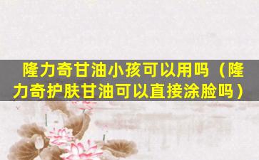 如果隆力奇甘油产品是专为儿童设计的,并且没有其他可能引起敏感的成分,那么小孩使用应该是安全的。但如果是成人护肤品,即使含有甘油,也可能含有其他不适合儿童的成分,因此在使用前应仔细阅读产品标签和成分列表,并咨询专业人士的建议。