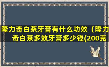 隆力奇白茶牙膏是隆力奇公司生产的一款牙膏,它含有白茶提取物,白茶是一种天然的抗氧化剂,具有抗菌、抗炎和抗氧化的特性。以下是隆力奇白茶牙膏可能具有的一些功效:
