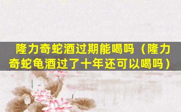 隆力奇蛇酒是一种含有蛇类成分的酒类产品,通常用于保健或药用目的。关于过期食品或饮料的安全性,一般建议是不要食用过期产品,因为它们可能会因为微生物的生长、化学变化或其他因素而导致品质下降,甚至可能对健康造成风险。