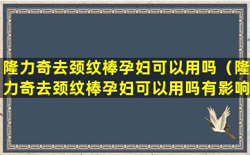 隆力奇(Longrich)是一家中国的健康产品公司,其产品线包括护肤品、个人护理品等。关于隆力奇的去颈纹棒,如果您是孕妇,使用任何护肤品或个人护理产品之前,最重要的是查看产品成分,并咨询医生或专业的皮肤科医生。