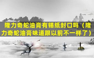 如果您想要确认您手中的隆力奇蛇油膏是否有锡纸封口,最直接的方式是查看产品的实际包装。如果您在购买时对产品的封口有疑问,可以咨询销售人员或者查看产品说明书中的相关信息。同时,购买时应确保产品包装完好无损,以保证产品的品质。