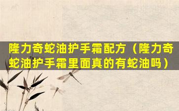 隆力奇蛇油护手霜是一款在中国市场上比较知名的护手产品,它的主要成分之一就是蛇油。蛇油是从蛇的皮肤中提取的一种油脂,含有丰富的脂肪酸,如亚油酸、亚麻酸等,这些成分对皮肤有很好的滋润和保护作用。