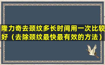 隆力奇(Longrich)是一家中国的健康产品公司,它生产多种护肤品,包括去颈纹的产品。关于去颈纹产品的使用频率,这通常取决于产品的具体说明和成分。一般来说,以下是一些通用的建议: