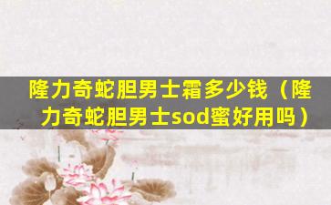 请注意,由于我无法获取最新的市场反馈和用户评价,以上信息仅供参考。如果您对隆力奇蛇胆男士sod蜜感兴趣,建议您查看最新的用户评价或咨询专业人士的意见。