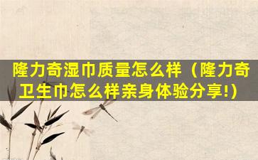 关于隆力奇湿巾的质量,由于我无法直接访问知乎或其他社交媒体平台的内容,因此无法提供具体的用户评价或讨论。不过,我可以提供一些一般性的建议来帮助你评估湿巾产品的质量: