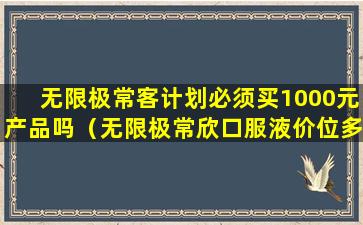 无限极(Infinitus)是一家中国的直销公司,主要销售健康产品。关于“无限极常客计划必须买1000元产品”的说法,这可能是指该公司的一种营销策略或会员制度。通常,直销公司会有不同的会员级别或计划,要求会员在一定时间内购买一定金额的产品以维持会员资格或享受特定的优惠。