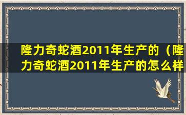 隆力奇蛇酒是中国一种传统的保健酒,它以蛇为主要原料,结合多种中草药酿制而成。2011年生产的隆力奇蛇酒,如果是正规厂家生产,并且保存得当,理论上应该还是具有一定的保健功效。