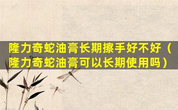 隆力奇蛇油膏在一般情况下是可以长期使用的,但前提是它适合你的肤质,且使用后没有不良反应。如果有任何疑问或皮肤出现不适,应立即停止使用并咨询专业人士。