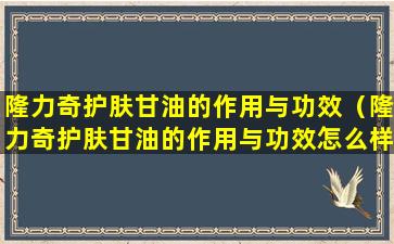隆力奇护肤甘油是一种常见的护肤产品,其主要成分是甘油。甘油是一种天然的保湿剂,具有以下作用与功效: