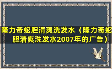 隆力奇蛇胆清爽洗发水是中国市场上的一款知名洗发产品,它以含有蛇胆成分而闻名,宣称能够有效清洁头皮,减少头屑,并带来清爽的感觉。2007年,隆力奇可能会通过电视广告、杂志广告、户外广告等多种渠道来推广这款产品。