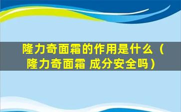 隆力奇(Longrich)是一家中国的健康和美容产品制造商,其产品线包括护肤品、个人护理品和营养补充品等。关于隆力奇面霜的成分安全性,需要具体查看该产品的成分列表。