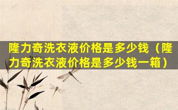 隆力奇洗衣液的价格因地区、销售渠道和促销活动等因素而有所不同。通常,一瓶隆力奇洗衣液的价格可能在人民币10元到30元之间,具体取决于产品的容量和类型。为了获得最准确的价格信息,建议您直接访问当地的超市、药店或者在线零售平台,如天猫、京东等,查看最新的价格信息。同时,您也可以关注这些平台的促销活动,以获取更优惠的价格。