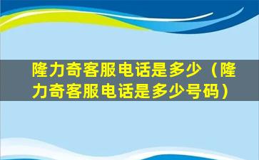 很抱歉,我无法提供实时的电话号码信息,因为我的知识截止日期是2023年4月,且我无法访问互联网以获取最新数据。如果您需要联系隆力奇(Longrich)的客服,建议您通过以下几种方式尝试获取联系方式: