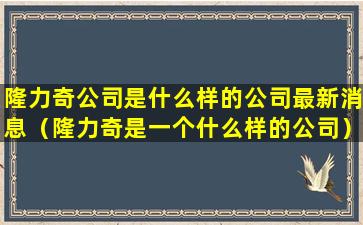 关于“最新消息”,由于我的知识截止日期是2023年4月,我无法提供此后的最新信息。如果您想了解隆力奇公司的最新动态,建议您访问公司的官方网站或关注其官方社交媒体账号,以获取最新的公司新闻和公告。您也可以通过新闻媒体或行业报告来了解隆力奇的最新情况。在查找信息时,请确保来源的可靠性和准确性。